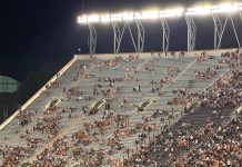 I didn’t get to interact with him much after I left media, but whenever I would come to Blacksburg we’d get to say hello to each other, and the conversation went right back to the 70s and early 80s when we were kids ourselves. The classic story we seemed to relive over and over again involved one evening when I was frustrated with a lot of things, including the current football coach and athletic director, Bill Dooley. I had expressed to Dave a desire to have a few drinks and climb up the side of Cassell Coliseum where Dooley kept a clock in the shape of a North Carolina football helmet in his window.